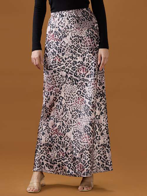 globus women rose gold leopard print mid-rise a-line maxi skirt