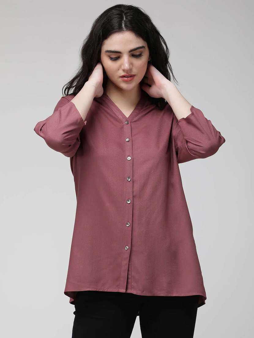 - » women solid mandarin neck regular shirt