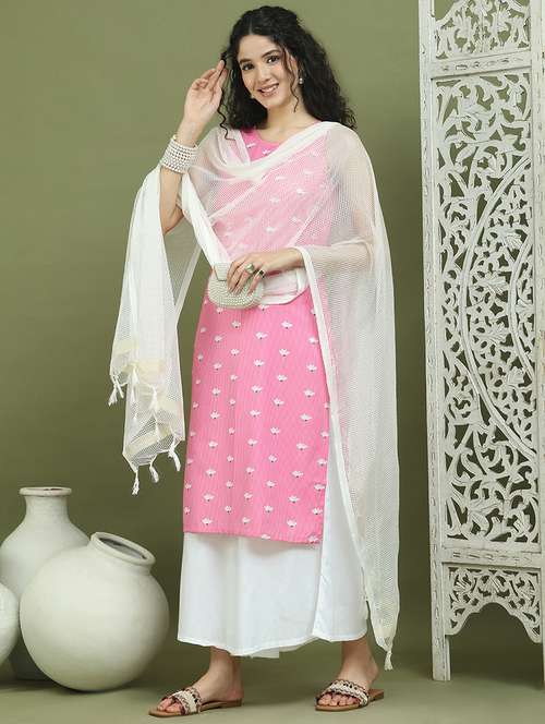 - Find gorgeous sets of ethnic wears in trending designs in pink colors suitable for casual wear of occasions.