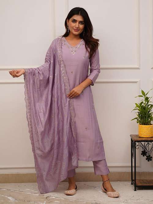 - Find gorgeous sets of ethnic wears in trending designs in lavender colors suitable for festive wear of occasions.