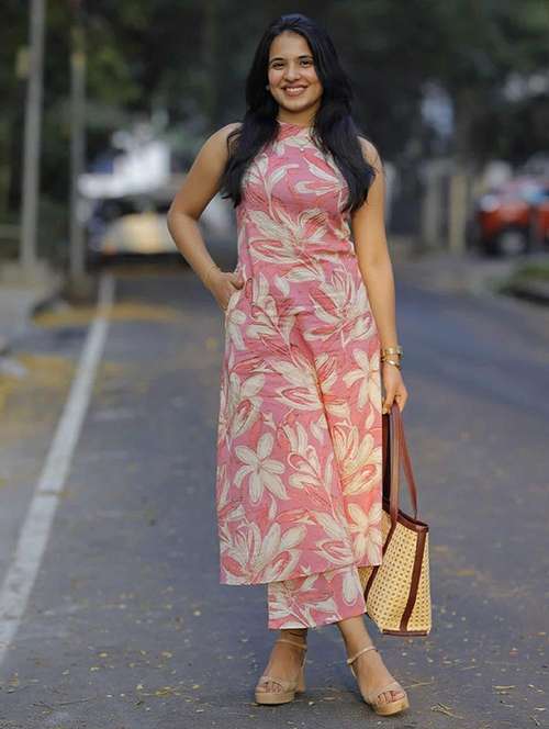 - » women printed sleeveless kurta pant set