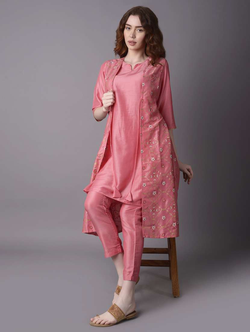 coral kurta jacket set - 21221522 -  Standard Image - 1 coral kurta jacket set - 21221522 -  Zoom Image - 1