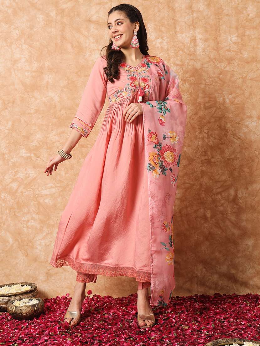 - Find gorgeous sets of ethnic wears in trending designs in pink colors suitable for festive wear of occasions.
