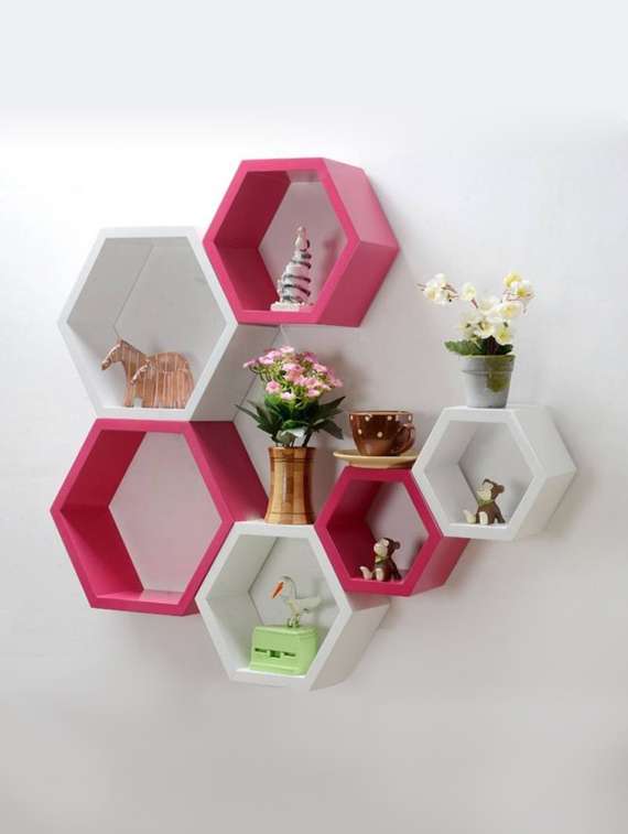 - » home deco hexagon shape storage wall shelves set of 6