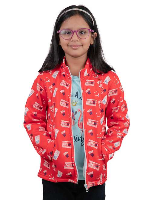 girls pink printed regular jacket
