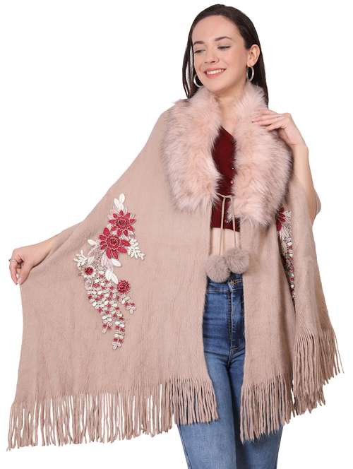 - » women self design pink embellished wool pashmina shawl