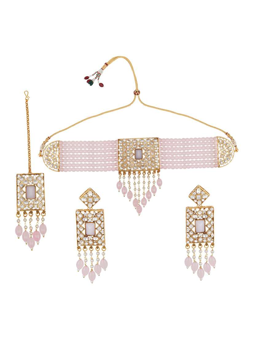 matushri art indian traditional necklace with earrings and maang tikka