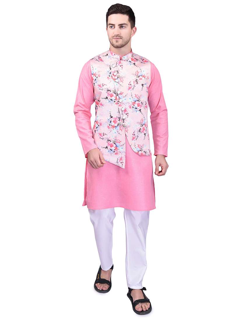 - » men solid mandarin neck kurta pyjama set with jacket