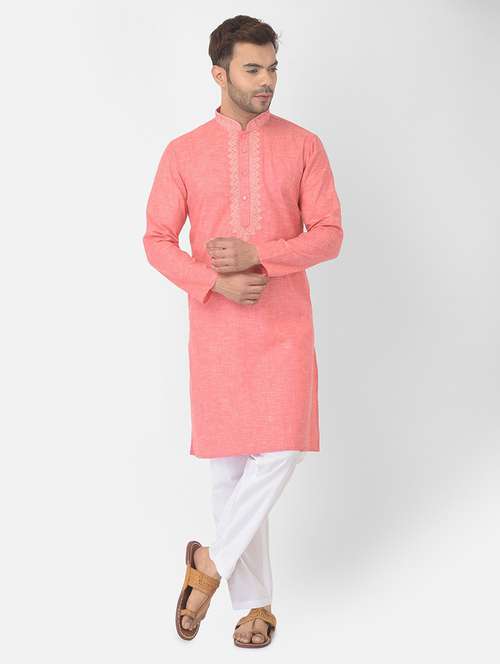 - » pink cotton kurta with trousers ethnic wear set