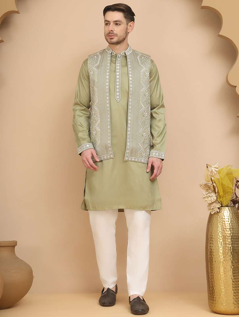 - » pista green cotton blend kurta pyjama with jacket ethnic wear set