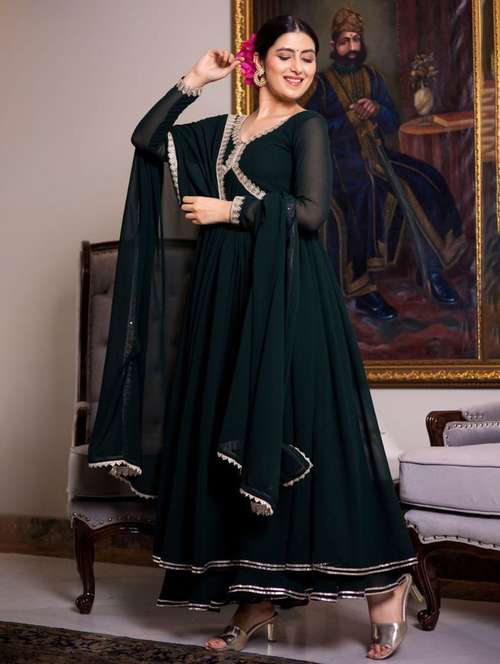 Punjabi suit are the traditional wear that are usually worn with Patiala salwars and jhooti. There are incurved with beautiful handwork of thread, stones, patch work, mirrors, self print and much more. With them comes the beautiful dupattas that are like the icing on the cake. You can pair your suits with ethnic jutti and jhumkas, with some bangles. This will make a complete combination of the Punjabi girl.