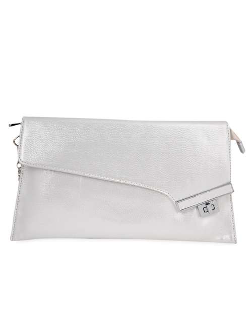 plain solid silver leatherette clutch