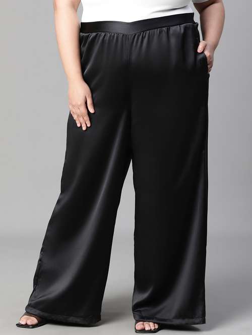 solid black plus size flat front trouser