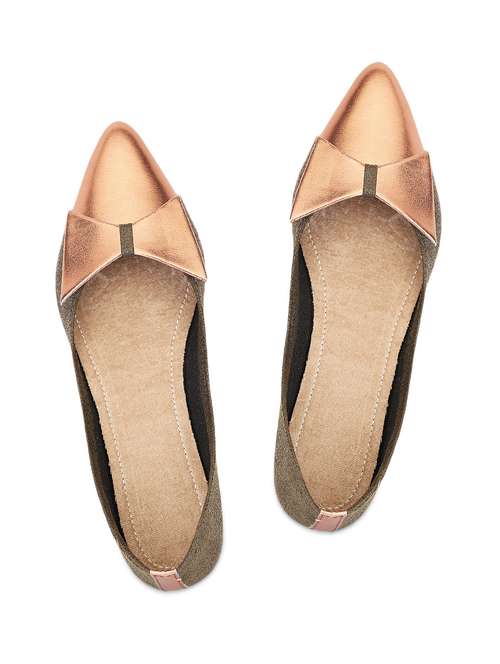 - » pointed toe metallic bow embellished synthetic ballerinas