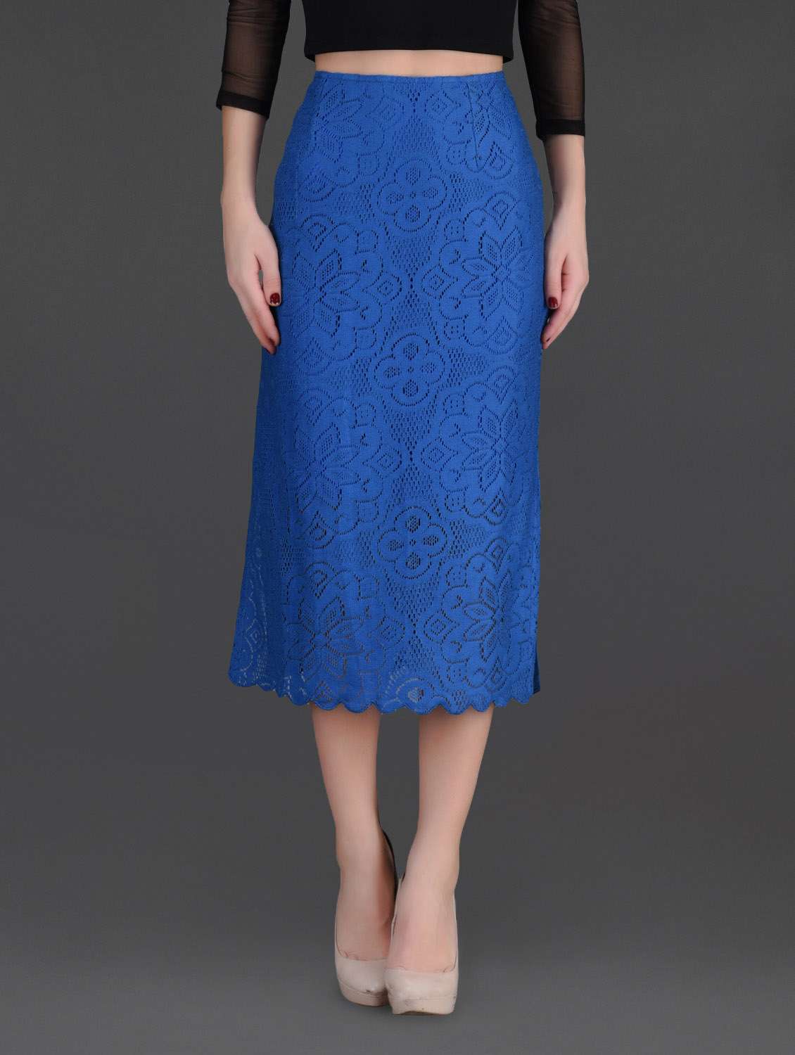 - » color polyester lace side slit long skirt