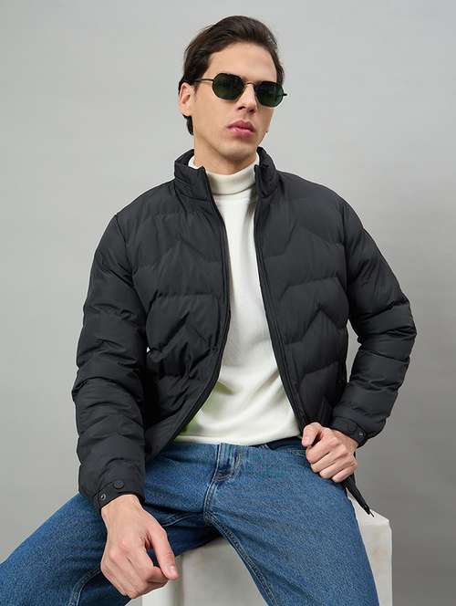 men solid long sleeve puffer jacket