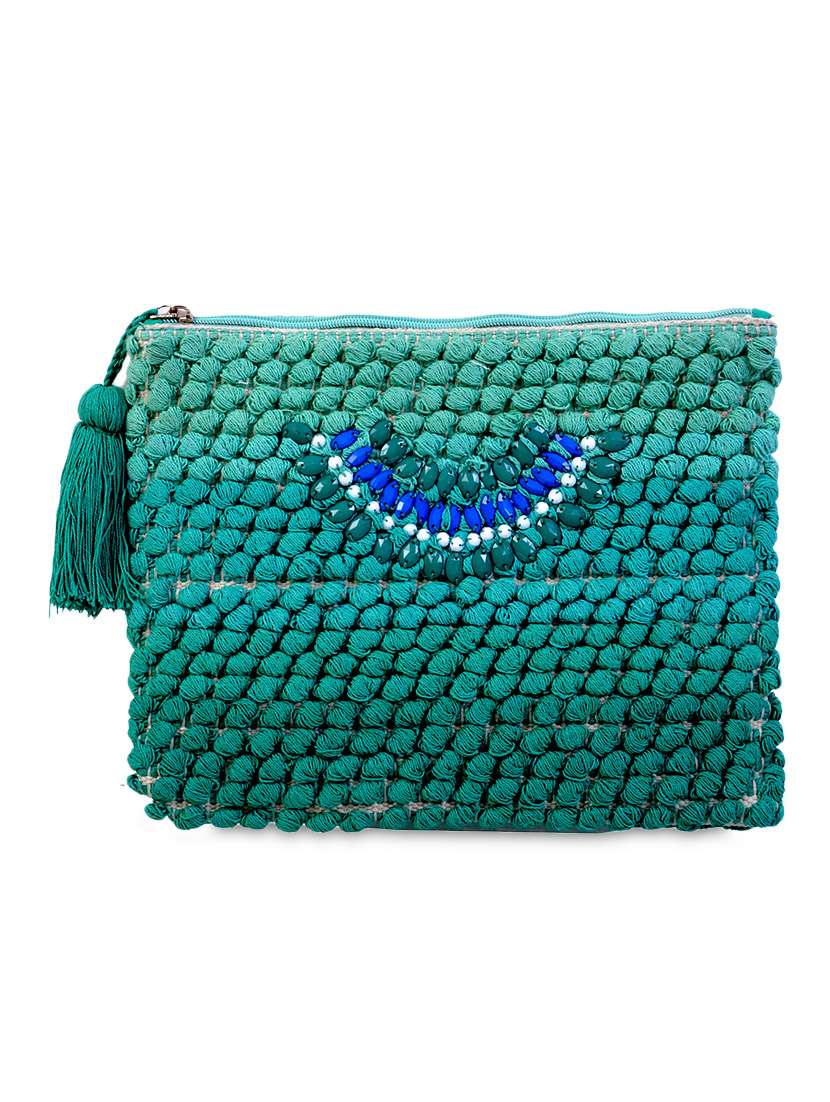 - » pom-pom embroidered pouch with tassels