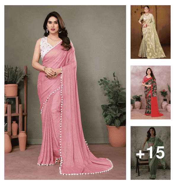 women solid plain saree with blouse