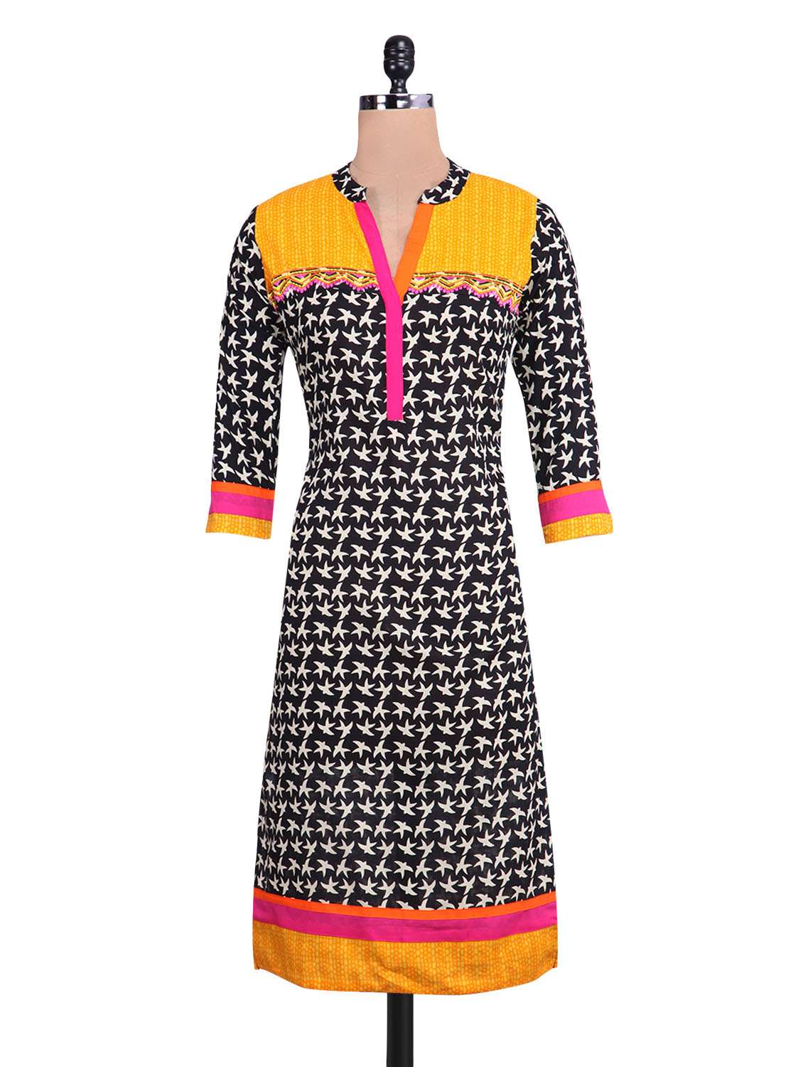 printed black cotton kurta
