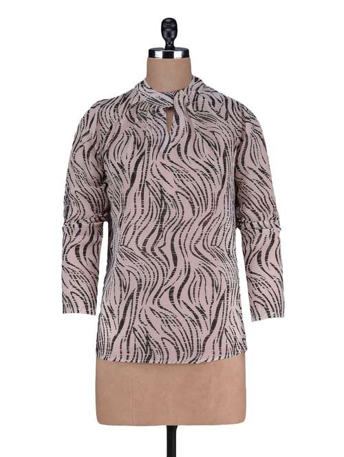 printed long sleeves polygeorgette top - 1125014 - Very Small Image - 1