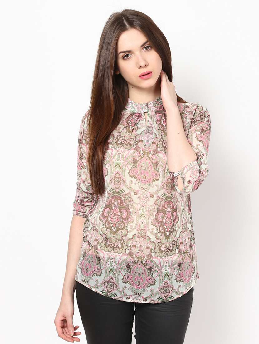 printed long sleeves polygeorgette top