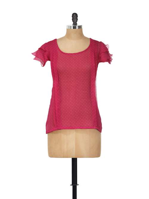 - » printed pink top with ruffled sleeves