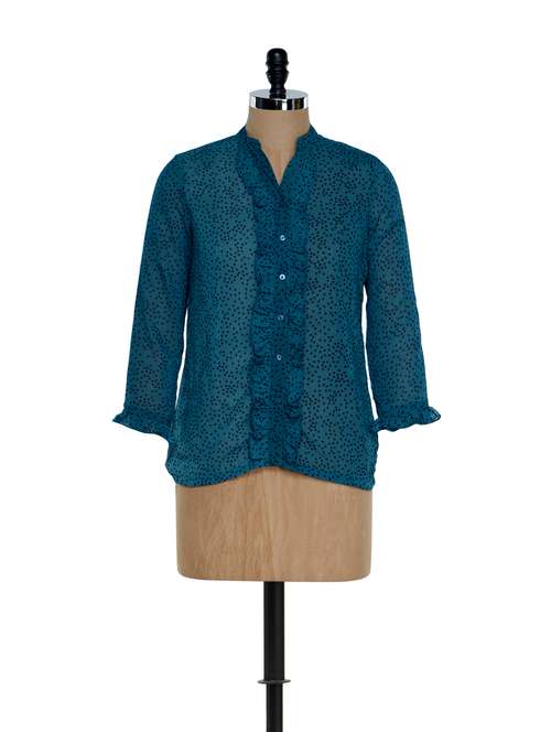printed ruffle trim shirt