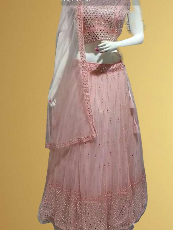 this pink color lehenga in net with mirror work is a best option for party and fastivals. this beautiful dress will make you feel like a shinning star in the wadding season. can be gifted to some one special