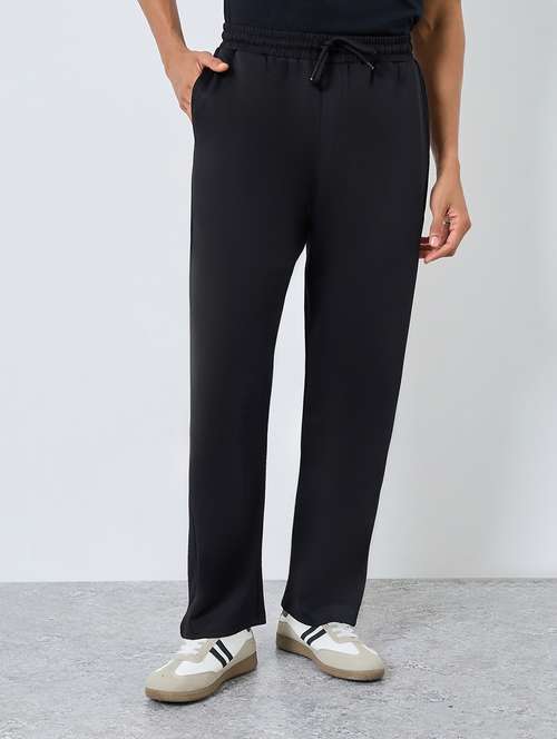 men solid mid rise relaxed fit track pant