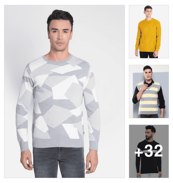 Pullovers for men are no longer designed in usual colours. Designers are now experimenting from bold geometric three-dimensional prints, animal prints and letter prints.