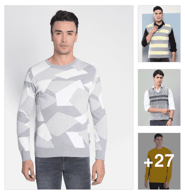 Pullovers for men are no longer designed in usual colours. Designers are now experimenting from bold geometric three-dimensional prints, animal prints and letter prints.