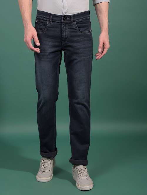 men navy blue washed mid rise full length jeans