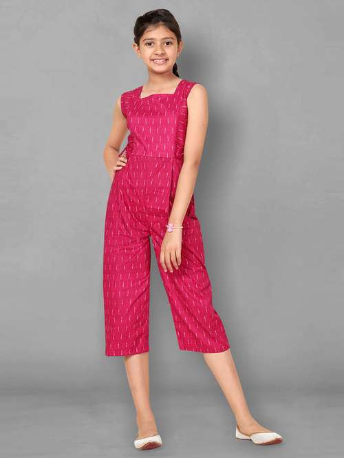 girls printed 3/4 jumpsuit