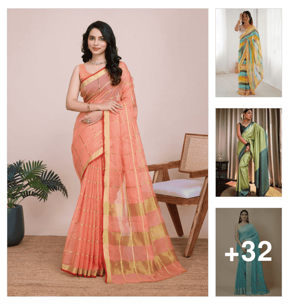 checkered woven saree with blouse