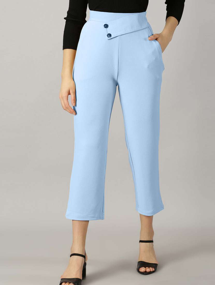 Ausk Solid Sky Blue Regular Fit Trousers