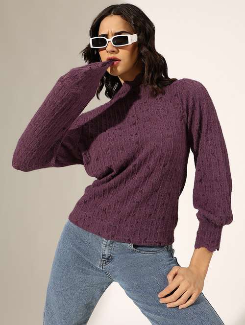 SHOWOFFFF Edition Women's Textured Purple High Neck Knit Top