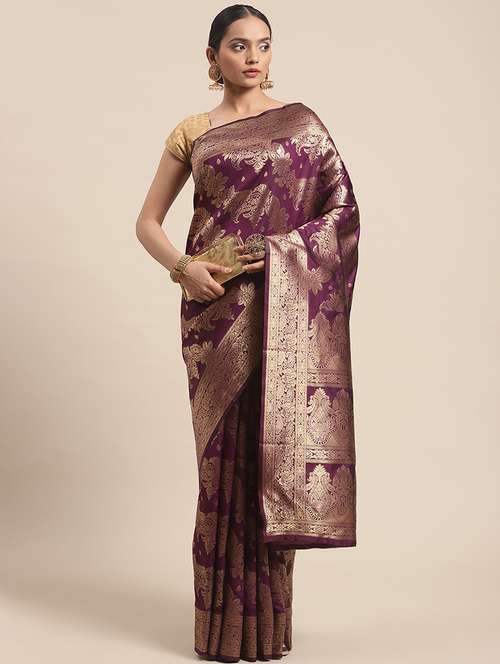 golden zari work banarasi saree with blouse - 18460290 - Very Small Image - 1