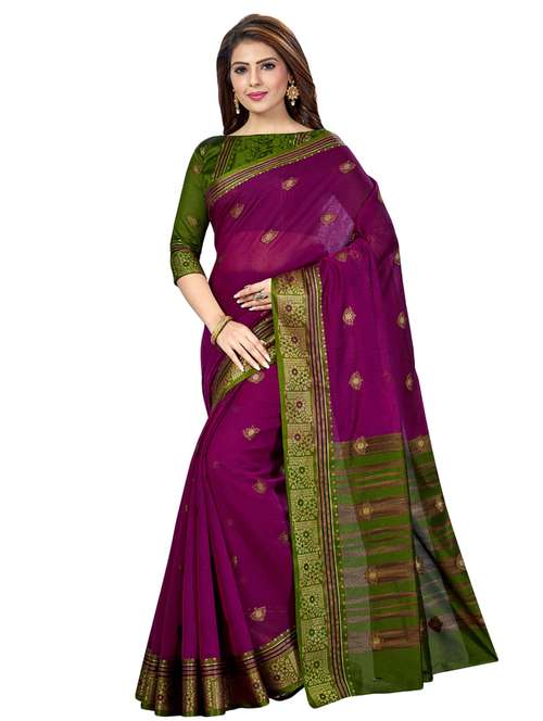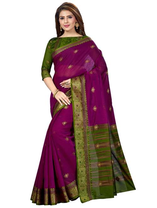 Saree Swarg Wine Cotton Blend Saree with Blouse