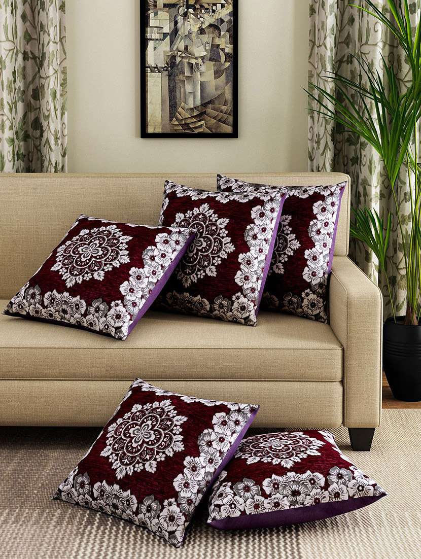 - » set of 5 chenille floral designed cushion covers