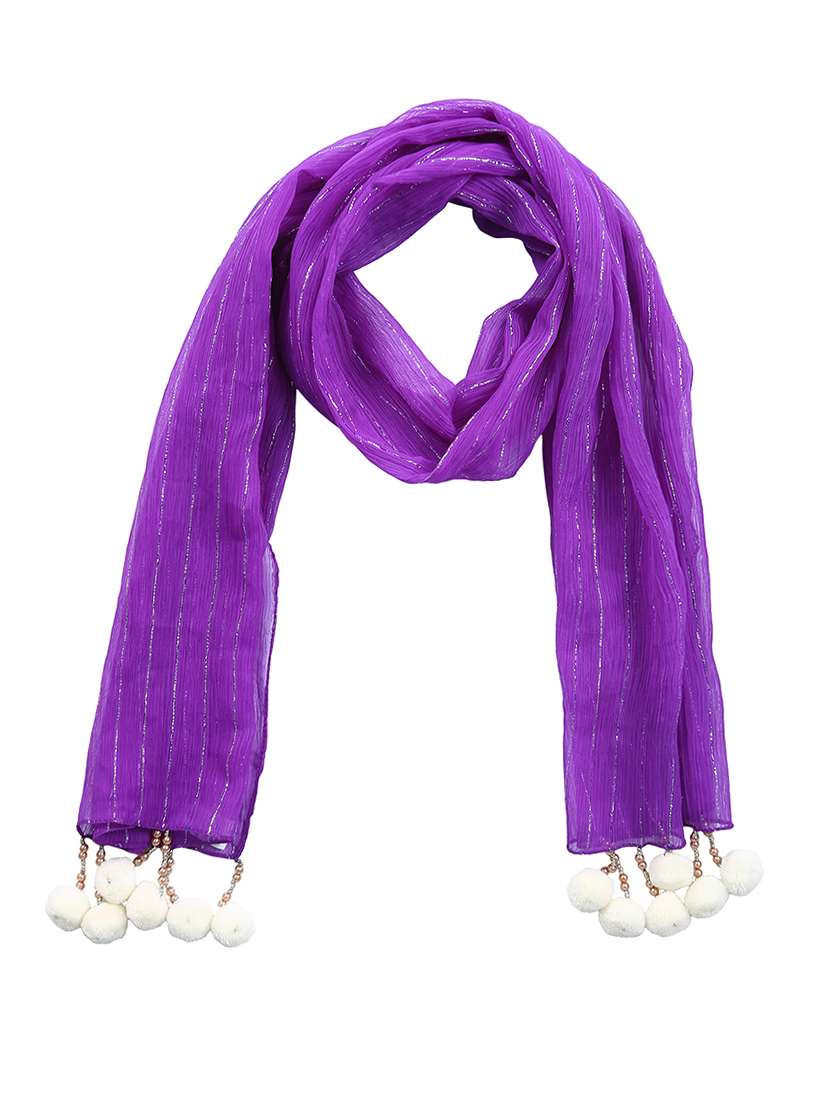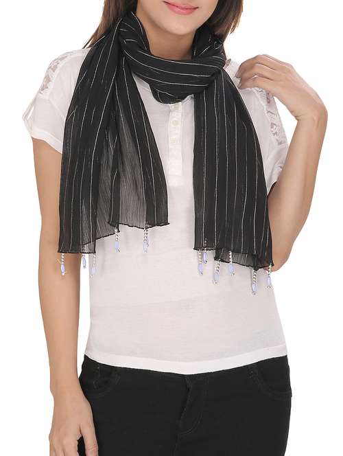 Glam Up Your Casual Look With This Striped Scarf With Fringes From Anekaant. Made From Chiffon Lurex Fabric . Team It Up With Your Casuals To Get That Upbeat Look Every day.