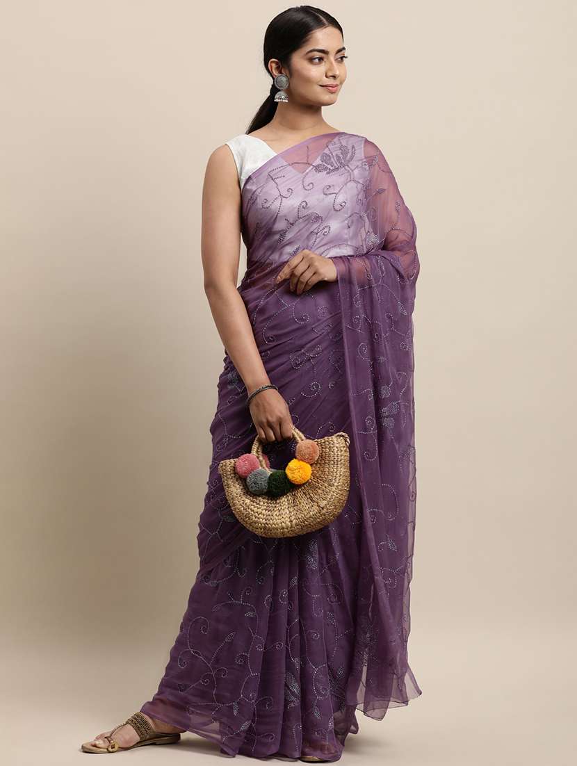 purple sequined saree with blouse