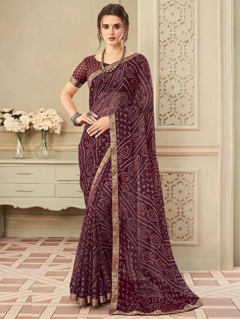 Reboot Fashions Presenting Chiffon Bandhani Printed Lace Border Saree with unstitched Blouse Piece