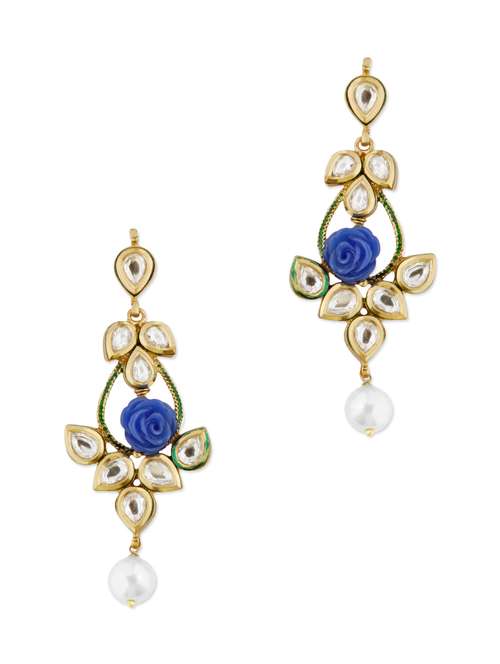 - » adwitiya collection 24k gold plated violet kundan embellished flower earrings