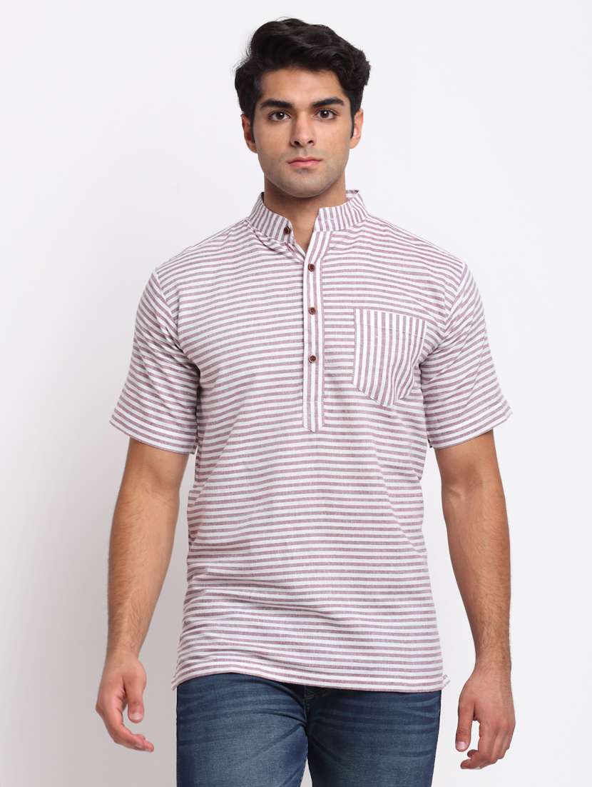 Aarsha Violet Striped Cotton Men's Short Kurta