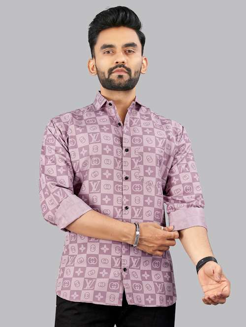- » men printed long sleeve regular fit casual shirt