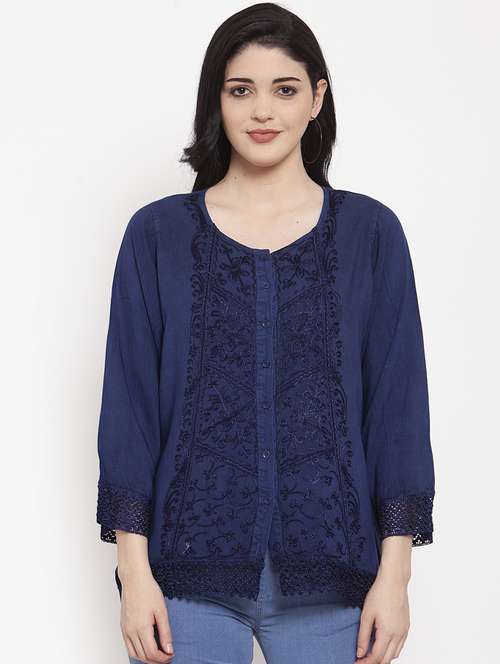- Opt for this top made up of cotton material and get it in a round neck design.