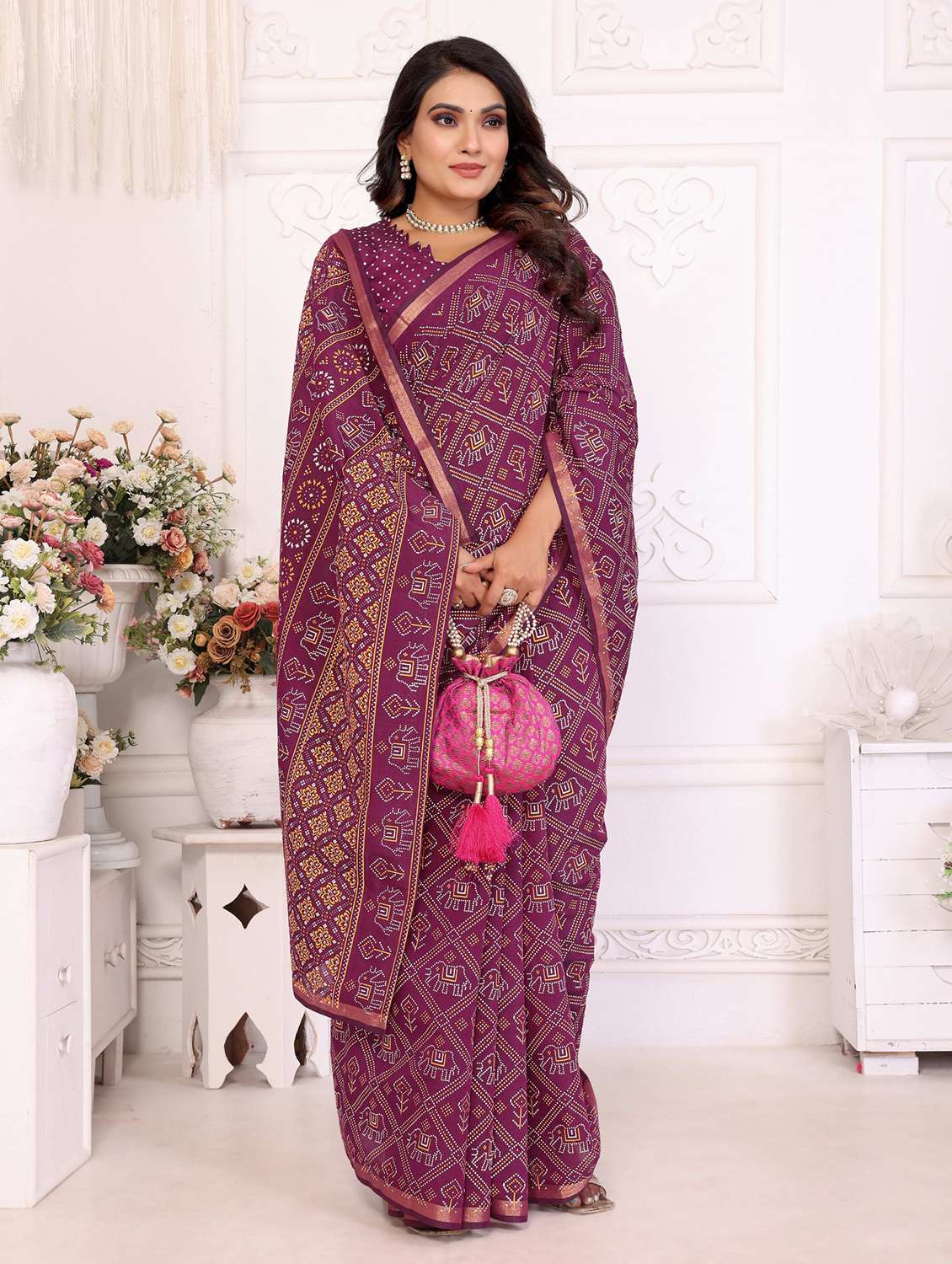 Purple Soft Cotton Light Weight Zari Weaving Saree With Blouse