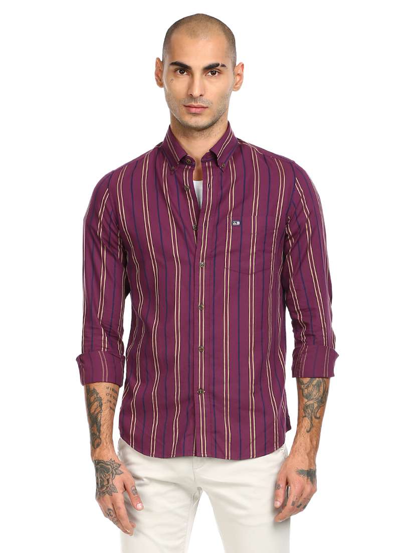purple striped casual shirt