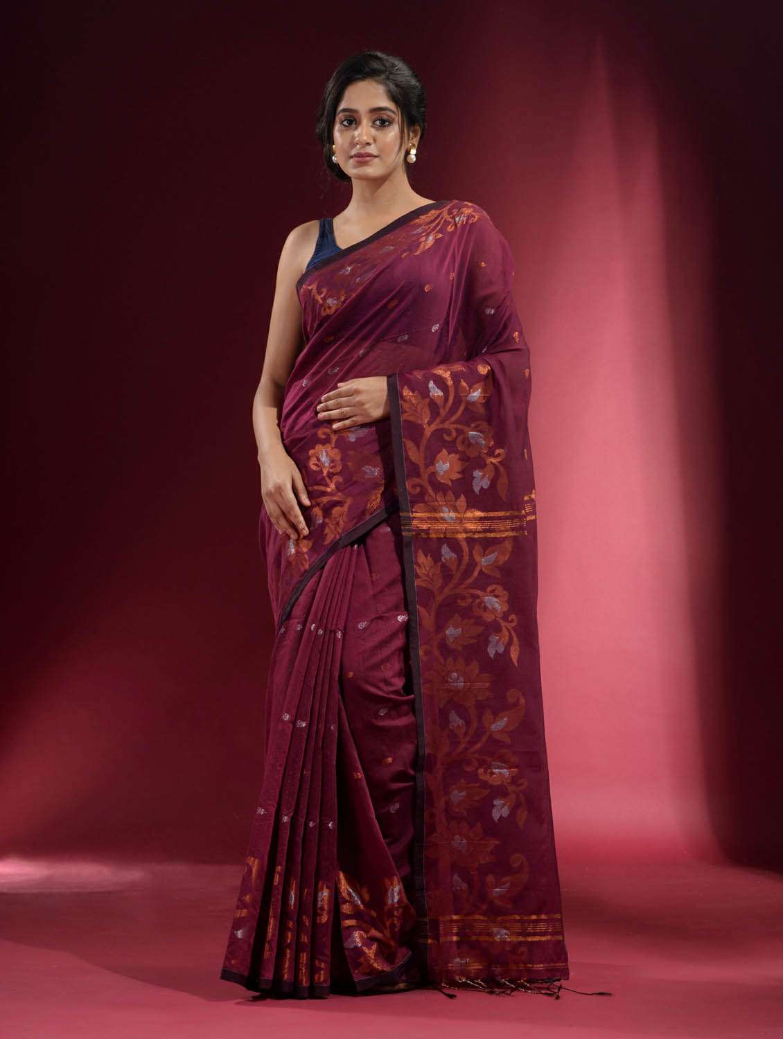 women's self design maroon colored saree with blouse