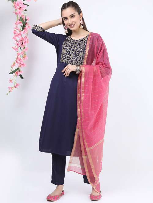 - » navy blue embroidered kurta pant set